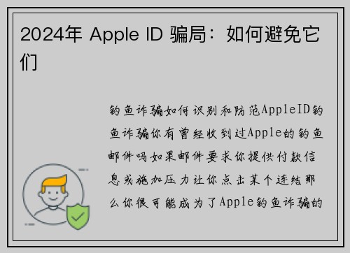 大多数 Apple 垃圾邮件的共同点就是 试图骗取你的 Apple ID 密码 或 Apple 帐户信息。这些类型的 网上诈骗 形式多样,并常常试图模仿 Apple 简约的设计风格。以下是 最常见的 Apple ID 诈骗类型。